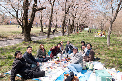 システム生体工学科では、学科教職員の親睦を図るため、例年桜の開花時期に合わせて休日にお花見をしています。今年は4月13日(日)におこないました。