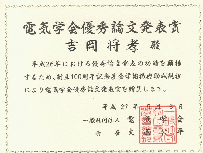 平成26年部門優秀論文発表賞(部門大会)